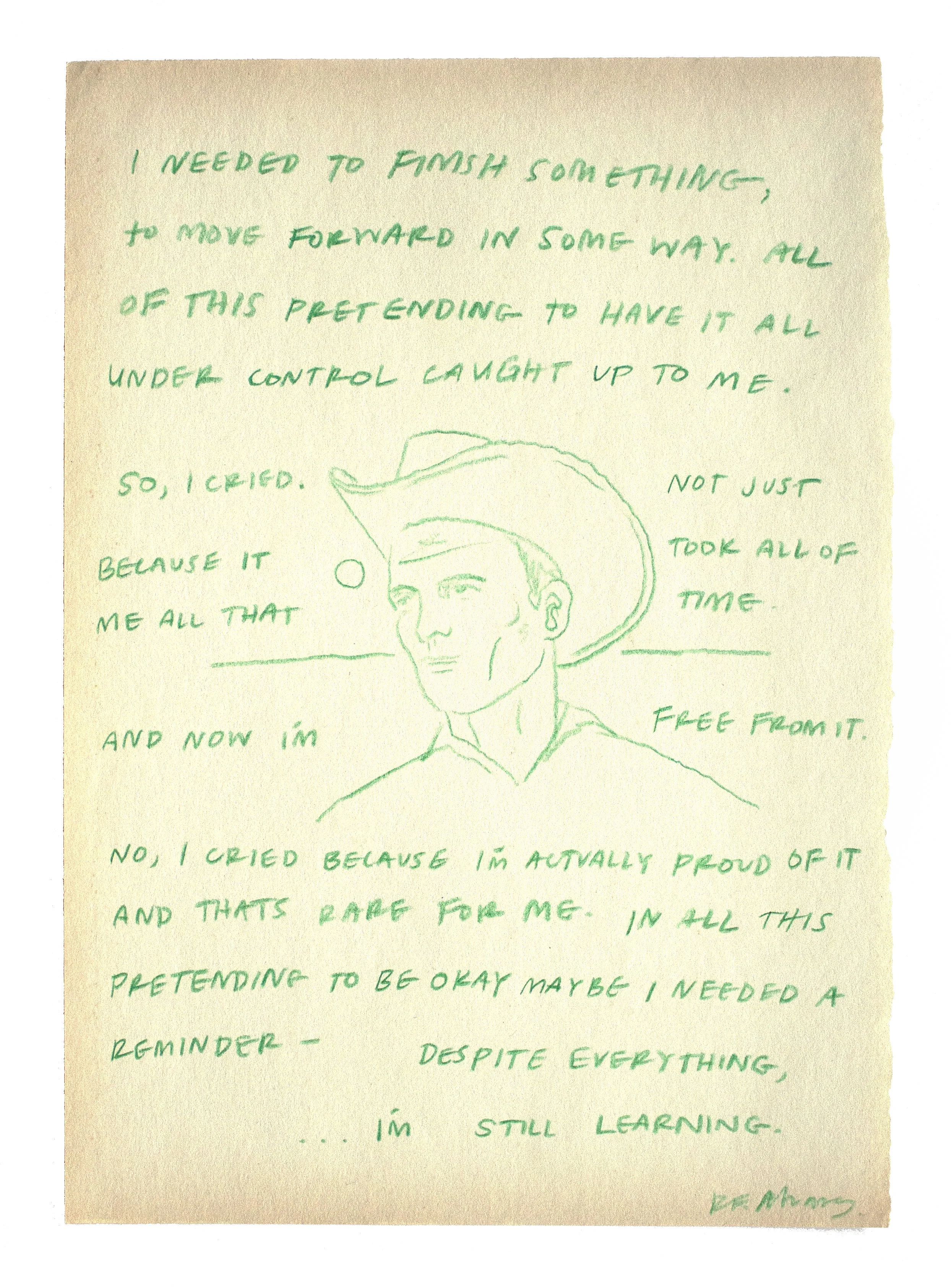 Colored Pencil on pages taken from artist’s childhood sketchbook; Words taken from artist’s journals